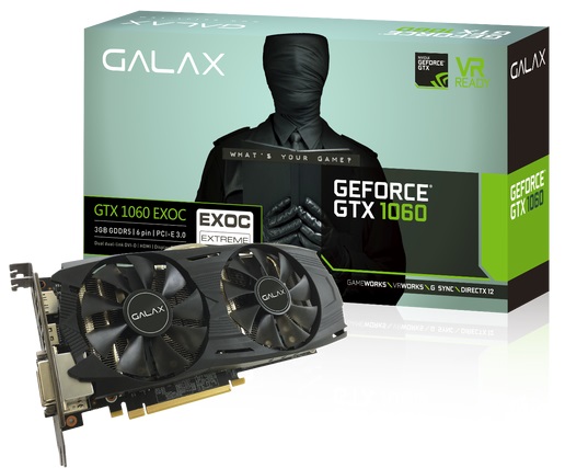 GeForce GTX 1060 3GB EXOC black is almost completely identical to the model EXOC the White, with the exception of black color casing and a lower operating frequency of the GPU, which range from 1544 to 1759 MHz in the boost-mode.